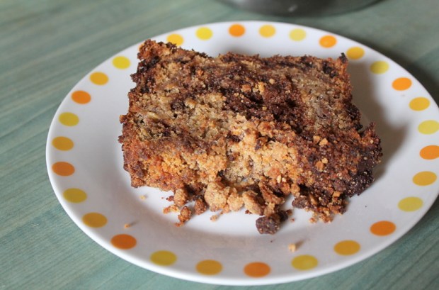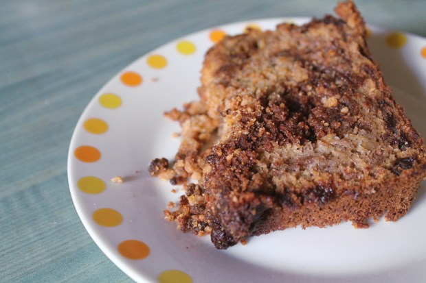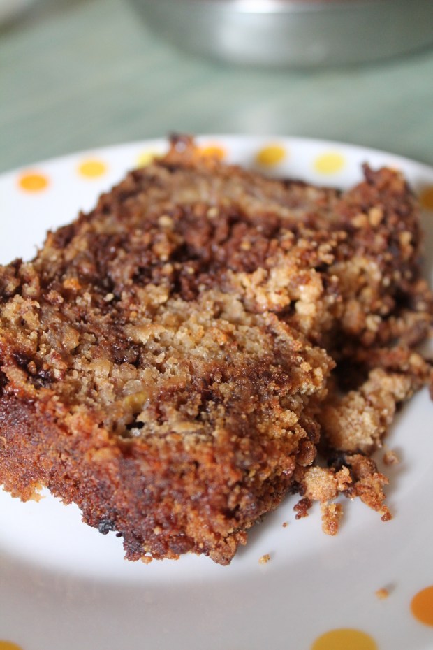 Good ol’ banana bread. With swirls of malt. And studded with chocolate chips. Topped with crumble. A banana bread really can’t get better than this. That its low fat is just a bonus.